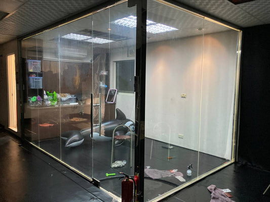 - A sleek black theme with soft, safe vinyl floors — stylish and slip-friendly
